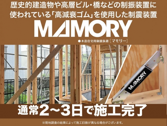 住宅用制震装置として住友ゴムが開発した制震装置であり、国内の住宅において多く採用されると共に、熊本城天守閣の耐震改修工事や東本願寺の耐震補強工事等、歴史的建造物にも採用実績のある信頼性の高い制震装置です。
