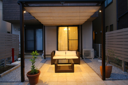 夜に夫婦そろってお庭でゆっくりワインを飲める