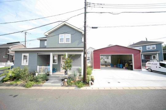 新しく土地を購入し増築計画!アメリカンスタイルな街並みに新しく アメリカンガレージをとの御相談から御提案したプランとなっております、敷地中央にガレージを配置し手前スパースにも車を置ける広々とした造りになっております、ガレージ裏にはお庭が設けられ、これからガレージに合ったお庭づくりが始まります、ガレージ内にはトイレも完備してあり、わざわざ自宅に入らなくてもOK、男の秘密基地完成