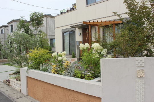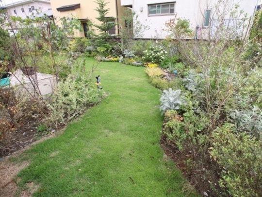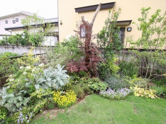 憧れの庭を手にして草木を植えても、思い描いていた憧れの庭とは程とおく、自分で庭をつくることに限界を感じていたというN様。既存の外構を活かしつつ、お庭を広く見せられるようにデザイン。実用的でありながら、暮らしにいろどりを与えるステキなお庭が完成しました!