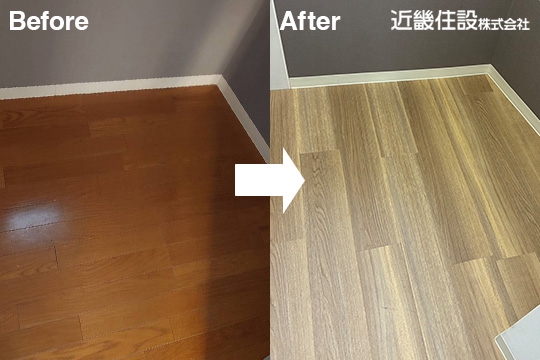 傷みの目立っていた床材を、風合い豊かなフローリングへと新調しました。
