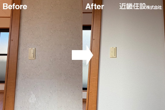 清潔感のあるホワイト系のクロスを選ぶことで、光を効率よく反射し、お部屋全体がパッと明るく広々とした印象に生まれ変わります。