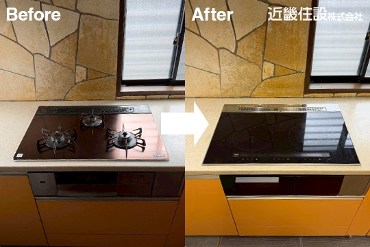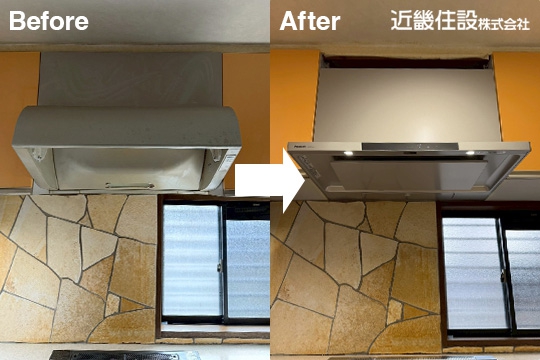 経年劣化による汚れが目立っていたレンジフードとコンロを、最新の設備へ入れ替えました。
