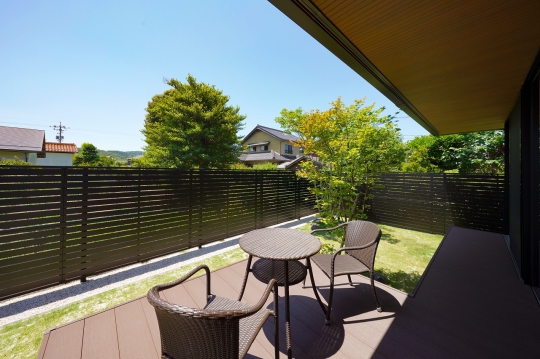 外の空気を触れリビングのように過ごせる半戸外の空間。