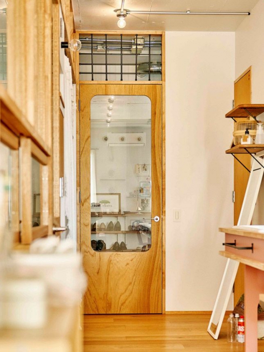 圧迫感や閉塞感がないように、キッチンはガラスつきの木格子で区切ったり、扉もガラスの面積を大きくして猫が覗けるような提案をしてくださいました。