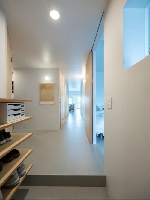 リビングと寝室を繋ぐ通路です。素材が変わることで明るさも意識も自然と切り替わります。