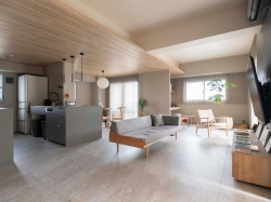 家族が同じ空間で思い思いに過ごせる「付かず離れず」の距離感を大切にした住まい。将来の変化に対応できる可変性や、長身のご主人に合わせた細やかな寸法調整、効率的な家事動線を凝縮。都心で職住近接を叶え、ライフスタイルと家族の心地よさを両立させた空間です。