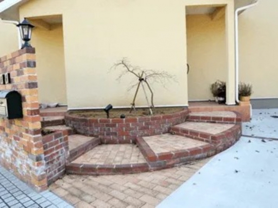 悪天候の中でもすぐに打ち合わせに来てくださり、ありがとうございました。高齢の母の要望にも丁寧に応えてくださり、デザインや植栽、レンガの提案などもとても助かりました。中央のサークルは、以前雑草が多かった我が家にぴったりのデザインで、とても気に入っています。雨の後も水はけがよく、北側の敷地も快適になりました。ご近所の方にも好評で、お願いして本当によかったです。