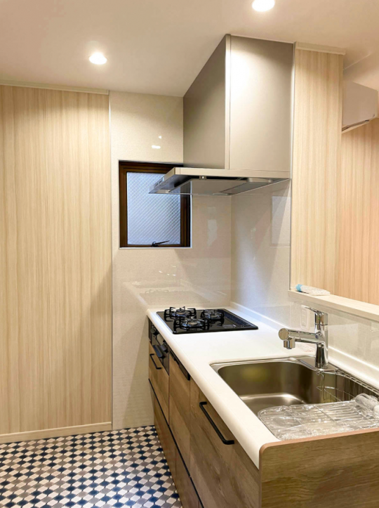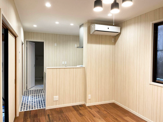 ・壁付けキッチンを対面式キッチン(クリナップ ラクエラ)に変更 ・DK、トイレ、浴室、洗面室の間取り変更
