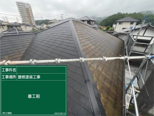スレート屋根塗装のメリットは美観アップすることです。色あせた屋根がよみがえり、家全体の印象がパッと明るくなります!塗膜が雨水の浸入を防ぎ、カビやコケの発生を抑えます。早めの塗装で劣化を防ぎ、葺き替えよりも経済的に。