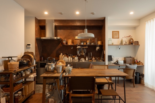 素材の色や質感、音楽や暮らし方まで、好きなものを一つひとつ丁寧に重ねた住まい。ウォールナットを基調に、ステンレスやタイルなど異素材をバランスよく組み合わせ、落ち着いた雰囲気に。風や光が巡る空間に、緩やかな段差でどこでも寛げる余白を設け、愛着のある道具とともに過ごす時間を大切にしています。住まうほどに自分らしさが重なっていく、日常をコレクションするような住まいです。