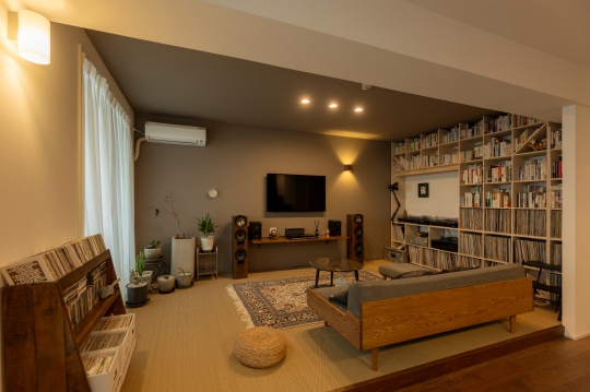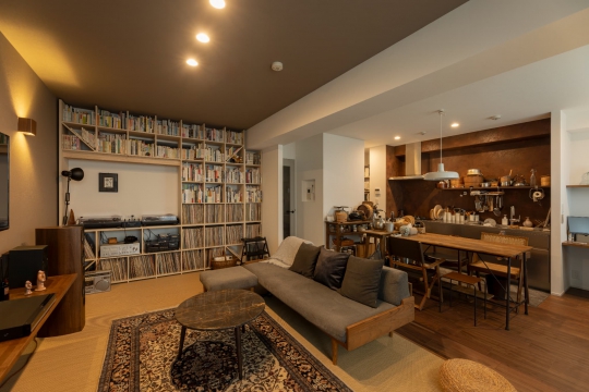 好きなものに囲まれて、こだわりのものたちと暮らす生活。好きな音楽や本、映画など趣味を存分に楽しめる住まいを目指し、築25年のマンションをリノベーション。