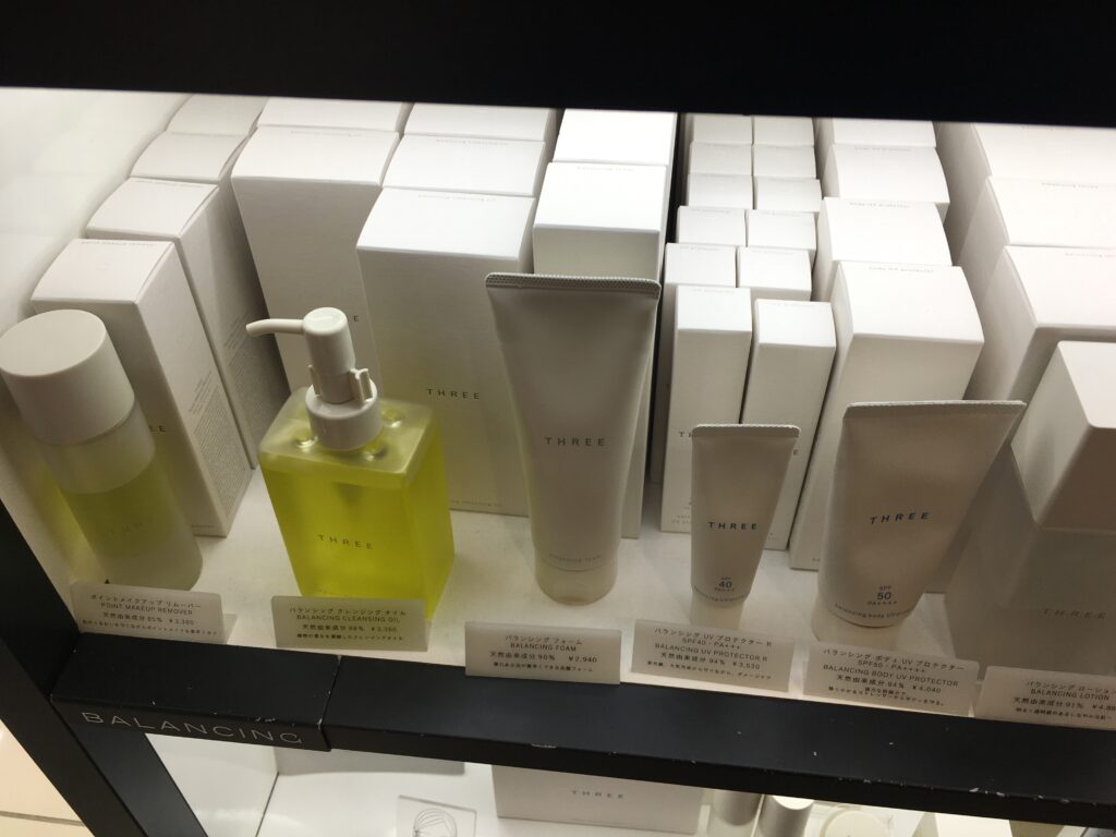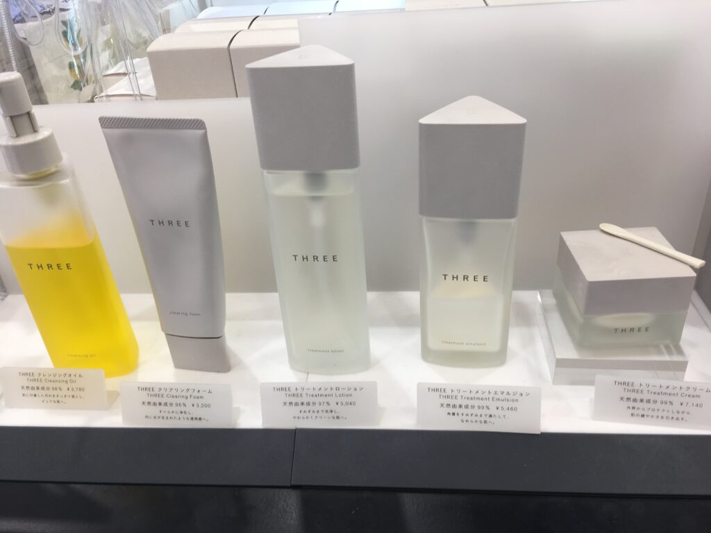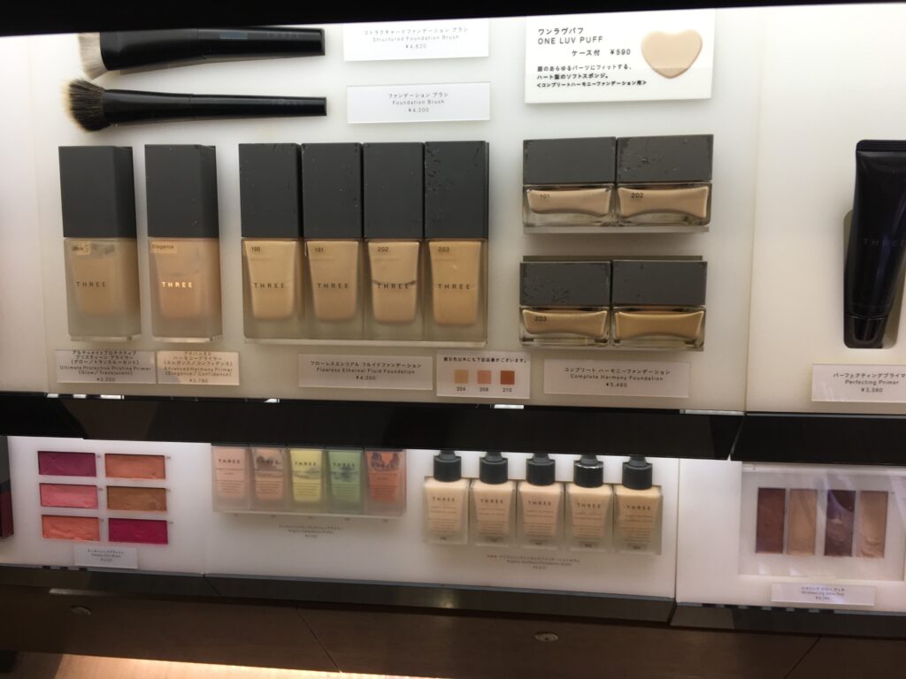 THREEは基礎化粧品、ベースメイク、カラー物と種類が豊富に取り揃えられていました